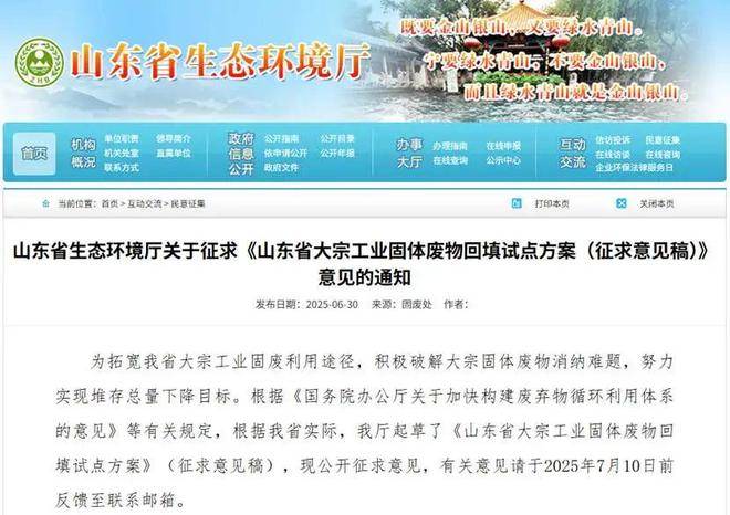 2025年7月,山东省发布《大宗工业固体废物回填试点方案(征求意见稿)》,聚焦露天采坑、地下塌陷区等典型场景,探索通过大宗工业固废回填的方式,实现“固废消纳”与“生态修复”的双重目标,引起业界广泛关注。 这项试点背后,是我国在大宗固废处理与矿山修复领域面临的双重压力:一方面,全国大宗固废历史堆存量已达600-700亿吨,年均新增近百亿吨,尾矿等大宗固废综合利用率却仅有35%左右[1]。另一方面,全国仍有约9.9万座废弃矿山亟待修复[2],采坑、塌陷等区域留下大量的“生态伤疤”。