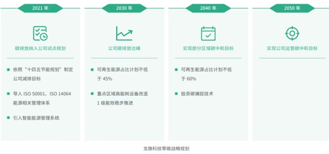 据了解,Wind ESG评级体系以环境绩效、社会责任、公司治理三大维度为核心,覆盖数百项细分指标,全面评估企业可持续发展能力。龙旗通过积极对接Wind ESG评级框架,持续优化推动ESG表现与业务发展深度融合。 1 治理为本,构筑可持续发展根基 “企业治理”是可持续发展的核心引擎。为进一步规范与强化ESG治理流程和组织架构,2024年,龙旗科技将董事会下设的战略委员会升级为"战略与ESG委员会",实现内部从上到下对“可持续发展”理念的宣贯。 在公司治理结构上,龙旗独立董事占比达33.33%,有效增强了监督机制和决策科学性。同时还建立了完善的商业道德培训体系,年度培训覆盖率74.24%,从源头筑牢合规经营防线。 风险管理方面,公司全年重大信息安全泄密事件为零,所有运营场地中具备ISO 27001信息安全管理体系认证的占比达到100%。这些数据印证了公司在信息安全治理方面的扎实成效。 2 绿色为脉,践行低碳发展承诺 龙旗的环境管理战略具有清晰的路线图。公司紧扣国家“十四五”节能规划,精准锚定减排目标,明确了能源消耗强度目标,以每年 3%~5% 的降幅,稳步推进减排工作。2024年,公司还设立了 “30/50”碳目标,即2030年前实现自身运营碳排放达标,2050年达成运营层面碳中和。 为实现这一目标,公司制定零碳战略规划:
