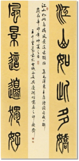 书法家王千里,1944年5月生,祖籍陕西三原。其父曾任书法大师于右任秘书,母亲系上海法政大学高材生,家中收藏古书及字画颇丰。在家学的耳濡目染中,自幼酷爱书法篆刻;从中学时代开始拜陕西省文史研究馆馆长、著名书法家张寒杉为师钻研书法篆刻。他用心坚韧、不忘初心、师从传统、造诣颇深。即使在上山下乡插队务农期间,仍坚持不缀,练就了真、草、行、隶、篆诸体皆能的书法功底,尤擅篆书及行、草。
