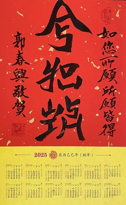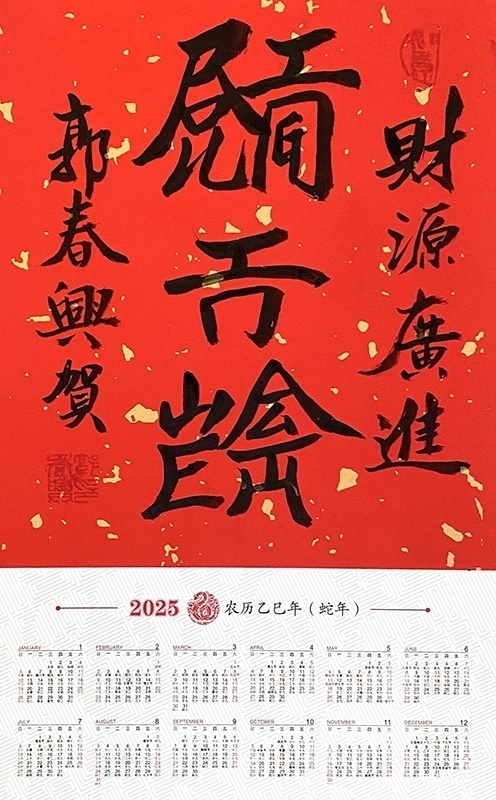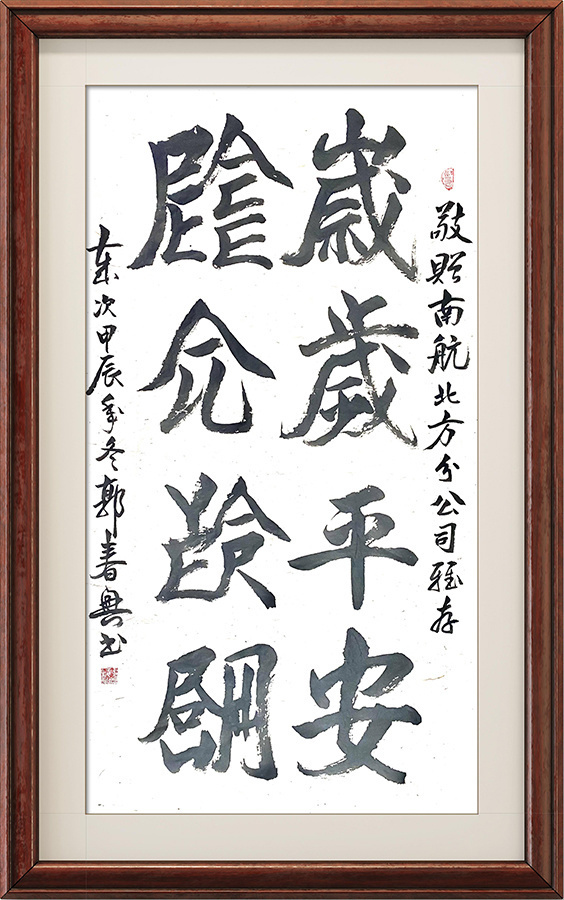 历史上出现过的那些书法名家,每一位都是学识渊博的思想家、文学家和社会名流,他们的传世之作都把作品内容放在首位,因此才成为思想性、艺术性俱佳的经典作品流传于世。郭春兴的作品能够受到许多国际友人的欢迎和喜爱,不完全在于他作品的书写水准,更重要的是他作品中所传播的优秀中华文化思想内涵的无限魅力。形式服从于内容的法则在书法艺术创作中永远是硬道理。 Those famous calligraphic masters in history are all knowledgeable thinkers, litterateurs and social celebrities. They all put content first in their masterpieces, so these classic works with good ideology and artistic quality were passed down from generation to generation. The reason why Guo Chunxing’s works are welcomed and loved bymany international friends is not just because of his skilled calligraphic level, more importantly, the infinite charm of the excellent Chinese culture and ideological conno- tation is imbued in his works. The rule that form should obey the content is always the absolute principle in the creation of calligraphic art.