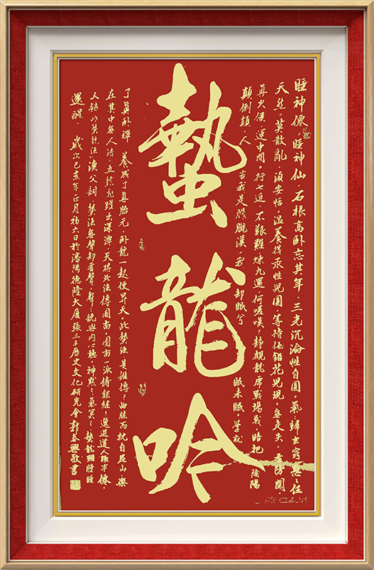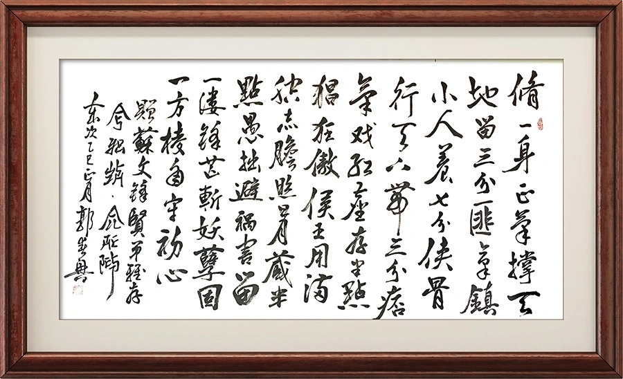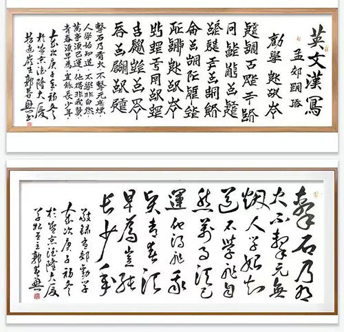 如果整个书法界长时期奉献不出无愧于伟大时代、伟大民族的经典作品,评出来多少奖、参加过什么展、作品卖了多少钱都是过眼烟云。郭春兴不计得失,把潜心创作、精美装裱、包括若干长卷在内的近百幅作品无偿赠送他人的做法不值得赞赏。但是,书法家要讲情怀、讲格调、讲品位,不得唯利是图的品行应该提倡。为人民书写、争做人民书法家应该成为新时代书法家的共同追求。 If the whole calligraphy circle fails to dedicate classic works matching the great era and the great nation for a long time, it will be just as transient as passing clouds no matter how many awards a calligrapher wins, on what exhibitions the works are put, and at what price the works are sold. I will not praise Guo Chunxing for his selfless act: he, regardless of gain or loss, has presented others with nearly 100 pieces of works, well framed and well mounted, including several long scrolls. However, his non-mercenary conducts should be advocated, since calligraphers should strive for passion, style and taste. Writing for the people and striving to be a calligrapher of the people should be the common pursuit of calligraphers in the new era.