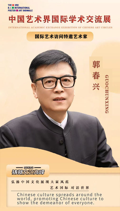 作为德英文汉写书法创始人,他连续三年受中国驻德国杜塞尔多夫总领事馆邀请去当地参加中国节,其独创的“德英文汉写书法”在中国节上成了一个颇受外国朋友“既能看懂又非常喜欢”的艺术品牌。到目前为止有近千幅作品被外国总统、要员、领事馆及贵宾和友人收藏。中国节期间他把抄录的 20多米长的《金刚经》和《道德经》书法小楷长卷分别赠送给主办城市杜塞尔多夫和科隆市政府收藏。          2022 年 9 月由窦邃先生采访撰写的《让中国书法和经典文化走向海外的摆渡人--外文汉写书法家郭春兴》(上下)被省市国家有关官方媒体相继转发,此文还被列为“中国艺术家海外展播工程”,相继被美国、德国、英国多家媒体报道,同时被《欧华新移民文学》全文转发。        2024 年 6 月,受中宣部国家文化发展国际战略研究院邀请,赴保加利亚参加第五届中国--中东欧国家文化创意产业论坛。先后在保加利亚国家与世界经济大学和索非亚中国文化中心举办了两场书法展,经保加利亚国家电视台采访报道后,他的德英文汉写和保加利亚文汉写书法在当地引起轰动。许多作品被大学图书馆和校领导及当地名人收藏。        期间他受邀为中国驻保加利亚大使馆设计的大型中国文化讲座,保文汉写“何以中国”的 LOGO正式启用。同时为索菲亚中国文化中心设计的“中国角”LOGO,都充满中国文化内涵,均受到广泛好评。
