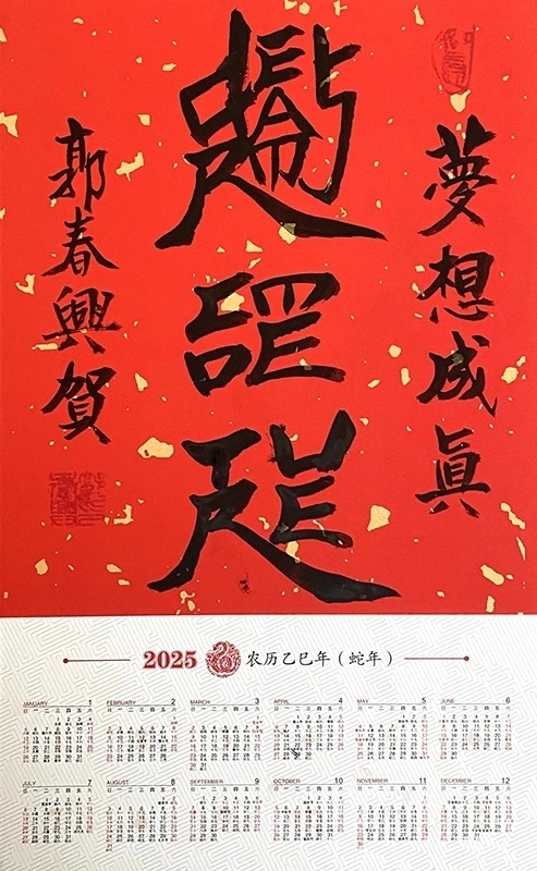 郭春兴探索中国书法与英文、德文词汇混搭的表现形式,不是异想天开追求猎奇,而是出于对中华传统文化和书法艺术的无限热爱。他不但坚持数十年临帖苦练基本功,而且刻苦研读传统经典文献,国学修养和文化底蕴深厚,尤其对《诗经》《易经》《道德经》《阴符经》等学术研究比较深入,经常到高等院校开展学术讲座。 Guo Chunxing’s exploration of the joint expression of English and German words written in the form of Chinese calligraphy is not just a fanciful idea or a pursuit of novelty, but out of his infinite love for Chinese traditional culture and calligraphic art. He has been insisting on practicing basic calligraphic skills for decades and studying the traditional classic literature assiduously. Against a profound cultural background and with a keen study of Chinese ancient civilization, he has especially delved into the classics such as the Book of Songs, the Book of Changes, the Word and the World, the Lunar Amulet, and well--equipped with Chinese Studies, he often gives academic lectures in colleges.