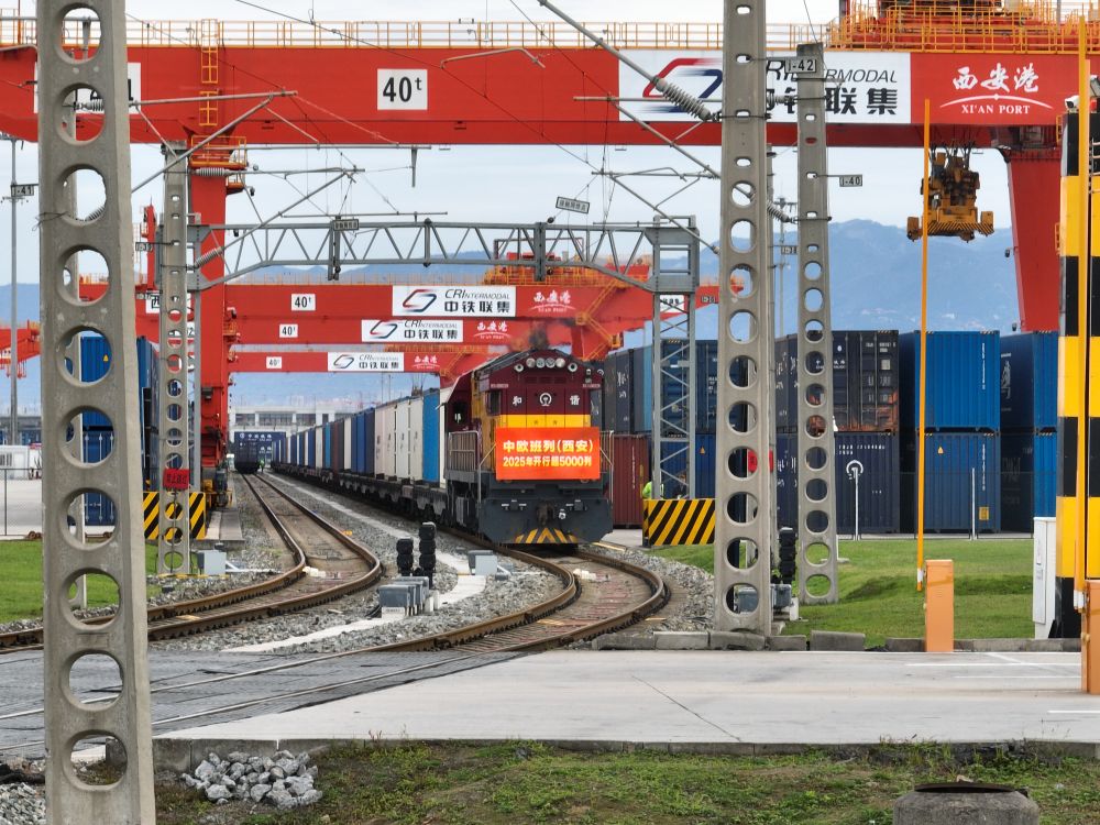 初冬的西安国际港站,机车轰鸣、吊臂林立。满载汽车配件、光伏组件和跨境电商货物的X9043次中欧班列缓缓驶出站台,奔赴阿塞拜疆巴库。铁轨延伸处,“钢铁驼队”川流不息,铺展出一幅亚欧大陆互联互通的生动图景。 国铁集团最新统计显示,今年1至10月,中欧班列(西安)累计开行5063列,同比增长16.3%,首次实现前10个月开行量突破5000列,创历年同期最高纪录,开行量、货运量、重箱率等核心指标持续领跑全国。