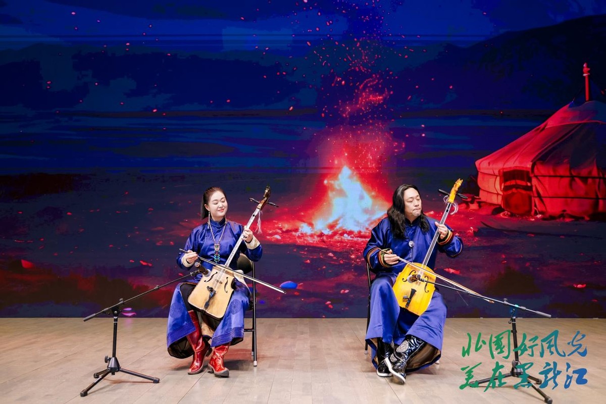 “奇妙冰火 鹤舞雪原”篇章热情奔放。大庆以“工业学大庆,研学游大庆”的豪迈气概,展现了从“油城”到“游城”的华丽蜕变,气势恢宏的马头琴演奏《万马奔腾》更是赢得满堂彩;齐齐哈尔的非物质文化遗产传承人郭建忠,用达斡尔族传统乐器口弦琴与歌声生动演绎了“鹤舞雪原”的灵动诗意与“国际烤肉美食之都”的烟火气,与“冰城左右哥”的幽默互动引发阵阵欢笑;绥化则热情推介了其丰富的关东风情体验与冰雪狂欢活动,一曲《相约绥化相约梦想》唱出寒地黑土的冰雪奇缘。