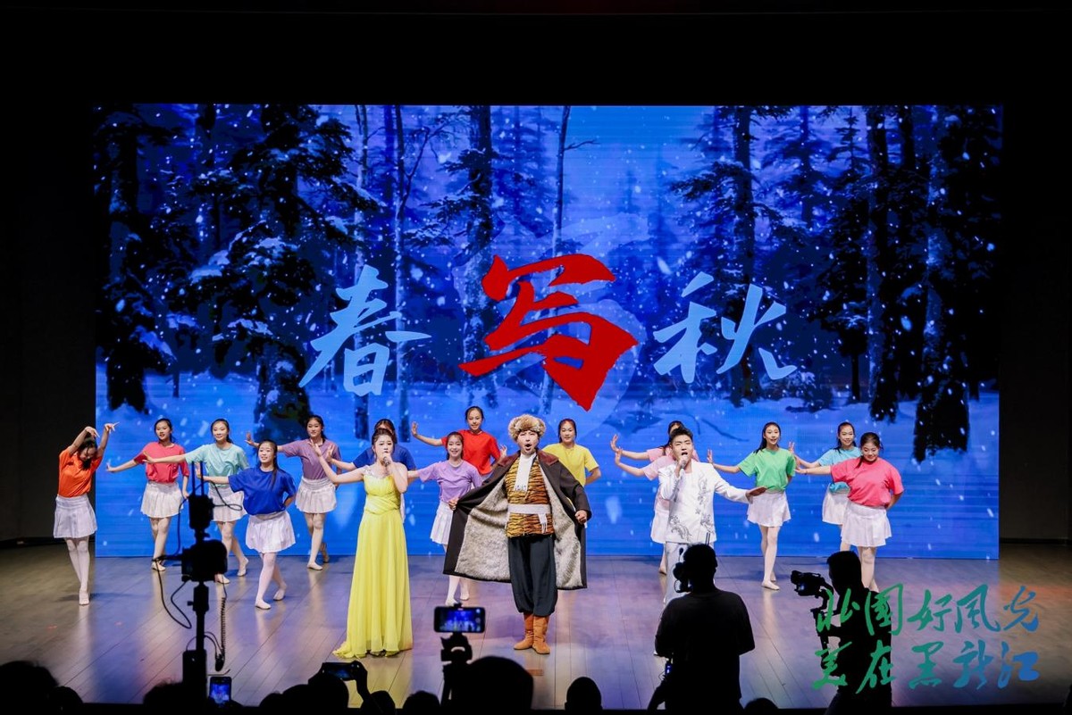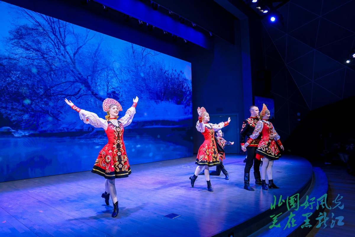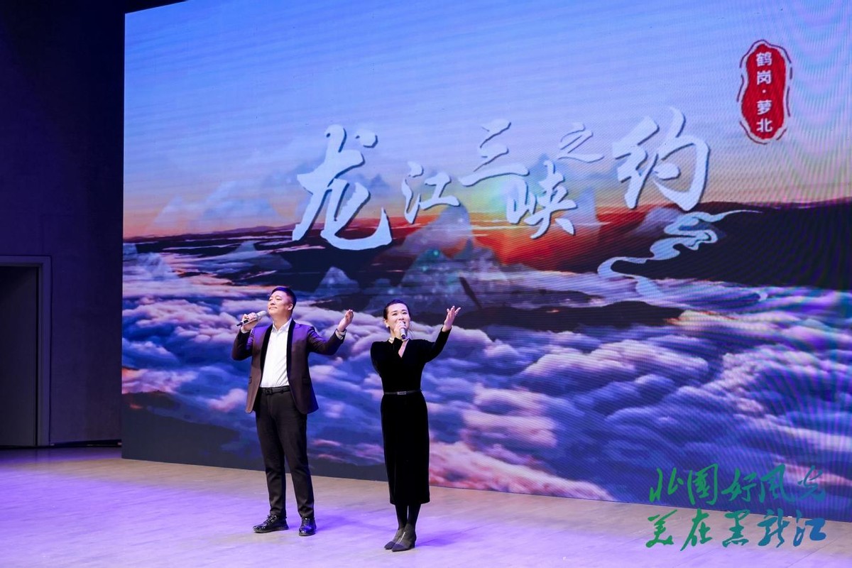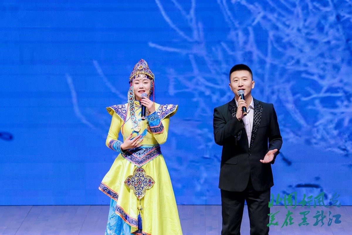 “冰雪森林 边城冬韵”篇章独具特色。鹤岗带来的歌曲《龙江三峡之约》以悠扬旋律描绘出界江冬日的壮美画卷,随后推介官以“雪韵冬乐活力鹤岗”为主题,热情洋溢地推介鹤岗六大精品线路和十大冰雪打卡地;伊春市的《森林里的家》用歌声诉说着冬季林都的静谧美好,随后推介官邀约大家走进库尔滨雾凇和大箐山雪淞的梦幻水晶仙境,感受“冰雪森林 童话伊春”的独特魅力;黑河热情的俄罗斯舞蹈《卡林卡》瞬间点燃全场,推介官以诙谐风趣的话语,生动介绍“中俄双子城”特色和五大连池“冷矿泉”的康养功效,让人仿佛置身于这座充满活力的边境城市。