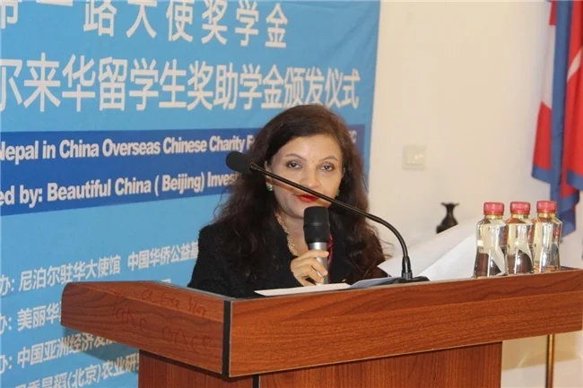 尼泊尔驻华大使馆临时代办,为大会首先致辞。她充分肯定了教育对一个民族的重要性,“教育是成长、进步和繁荣的关键。它赋予我们力量,以应对当今时代的复杂挑战。” 驻华大使馆临时代办同时也谈到了过去多年来,中国一直坚定支持尼泊尔,提供奖学金、培训以及专家交流机会。中国每年向尼泊尔学生提供100个中国政府奖学金名额,涵盖医学、工程、信息技术、农业和社会科学等多个领域,希望未来有更多的来自于社会方方面面的奖学金名额,支持和帮助更多的尼泊尔人来华学习。