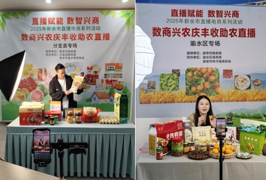 为贯彻落实省委、省政府数字经济发展战略,抢抓电子商务发展新机遇,新余市商务局以“直播赋能 数智兴商”为核心,指导策划2025年新余市直播电商系列活动,串联“数商兴农庆国庆”“数商兴农庆丰收”“双十一狂欢 余品好物优选”三大主题篇章,通过政企协同、全域联动、全链赋能的创新模式,构建起“农品上行、消费提质、产业升级”的数字化发展新格局,为新余经济高质量发展注入强劲动能。 国庆多元专场联动,点燃全域消费热情 “数商兴农庆国庆”直播活动率先启幕,以“全消费链条覆盖、线上线下融合”为特色,打造四大主题直播专场,让市民游客在云端尽享“游、食、乐、购”一站式体验。“畅游新余国庆打卡”文旅专场走进宽心小镇、仙女湖等核心景区,主播带领网友沉浸式“云游览”秋日胜景,线上推介门票、民宿及文创产品,实现流量与客源的双向转化;“食在新余味蕾狂欢”餐饮专场汇聚本地老字号与网红餐饮,通过名厨互动、特惠套餐发售点燃线下消费热情;“乐享新余潮玩假期”休闲专场聚焦亲子与年轻群体,推出的假日专属套餐广受青睐;“数智新余品牌闪耀”特色产品专场则重点推介江西米粉、水北麻花、马洪老酒等农特产品,深度挖掘非遗传承与古法技艺故事,让“土特产”变身线上“抢手货”。