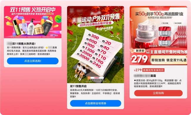 从前置的“双节”大促到“双十一”的购物狂欢,消费者对复杂的“满减奥数”开始感到疲惫,电商行业流量红利见顶、消费决策碎片化。面对这一挑战,2025年的双十一,各平台和商家重新审视“人货场”的关系,调整节奏,延长促销周期、密集布局促销节点,锁定用户的注意力和消费预算。其中,回归购物本质,从消费逻辑反推营销手段是关键。 ● 消费者希望快速找到心仪的商品。 ● 消费者注重购物过程中的体验,而非复杂的促销规则。 ● 消费者对商品的决策周期变短,但也更加挑剔。 针对消费新现象,品牌商家简化玩法,从“抢增量”向“挖存量”转变,真正做到精细化运营。双十一期间,不同场景下消费者的购物行为和需求有所不同,商家针对不同群体消费心理动线、场景和时间节点采取差异化、有侧重的营销策略,通过梦网科技5G富媒体消息解决方案“富媒体+高覆盖+强触达”优势,打通双十一营销中各群体“需求萌发-种草兴趣-决策犹豫-购买转化”的全场景全链路消费过程,赢得双十一大促。 场景一:通勤路上:快速种草促销信息,把“无聊时间”变成“黄金流量” 5G阅信:精准触达、高曝光个性化内容,吸引用户点击查看促销活动 消费者对双十一活动提起兴趣的第一步,是发现好物,但面对海量信息常常无从下手。在通勤等碎片化时间,5G阅信通过精准触达目标消费者,以个性化专属图文模板,实现促销活动智能生成与优化,吸引用户点击查看详情。在此阶段,5G阅信是品牌商家种草的利器。 以快消品、时尚搭配为例,品牌商家可利用5G阅信精准触达目标用户群体。通过富媒体展示产品信息,并加以“一键加购物车”按钮,将高清视频、精美图文直接推送至消费者手机短信箱。消费者无需复杂流程,点击短信箱就能快速浏览商品详情,高效决策。其强大的触达能力和高曝光特性,确保商家信息在用户手机屏幕上脱颖而出,让用户在不知不觉中关注产品,激发消费兴趣,为后续的购买行为打下基础,让消费者的无聊通勤时间秒变商家的黄金流量期。