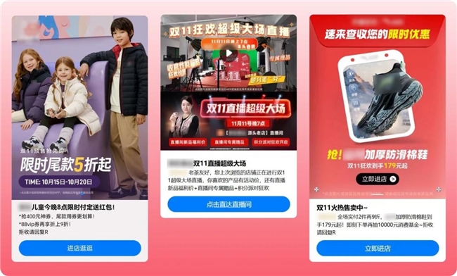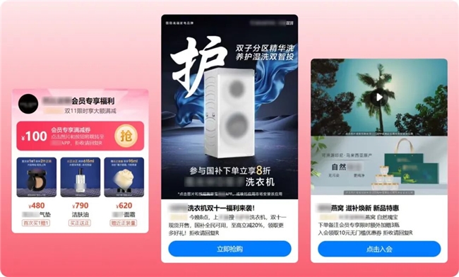 精准触达、深度连接。在双十一营销期间,5G阅信凭借其富媒体推送、精准触达、高曝光、一键直达、高效下单等优势,成为商家与消费者的“私信好友”,助力商家在不同场景下精准触达目标用户,提升点击率和转化率,为品牌营销注入新活力。 |