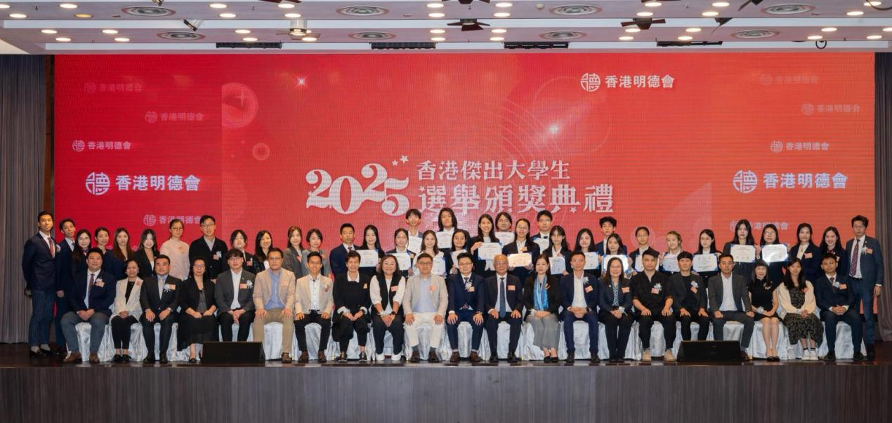 香港明德会举辧的「2025 香港杰出大学生选举」已经圆满结束,并于11月10日进行颁奖典礼,表彰二十位在学术成就、社会服务及领导才能方面表现卓越的大学生。典礼邀得民政及青年事务局青年事务科青年专员陈瑞纬及首席评审、前香港教育局局长吴克俭等嘉宾出席,共同见证并祝贺获奖学生。 香港明德会由创会常务会长及主席李尚仁博士于2020年创办,以「明德」为名,寓意从基础出发,致力服务青年及贡献社会,推广积极向上的青年文化。「香港杰出大学生选举」作为该会年度重点活动,自2022年首办以来,今年已踏入第四届。选举面向全港大专院校学生,不仅看重学术潜能,更重视培养服务社会的精神。