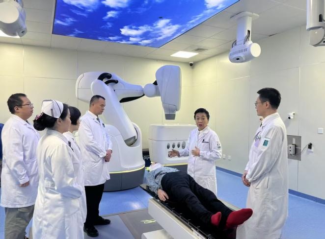 八旬患者颅内24个转移瘤的极端病例,考验着医疗技术的极限。放疗科杨岩主任带领团队,利用射波刀设备制定分次照射方案。“在毫米级空间内完成精准治疗,既要清除病灶,又要保护功能区——这是技术与责任的双重考验。”