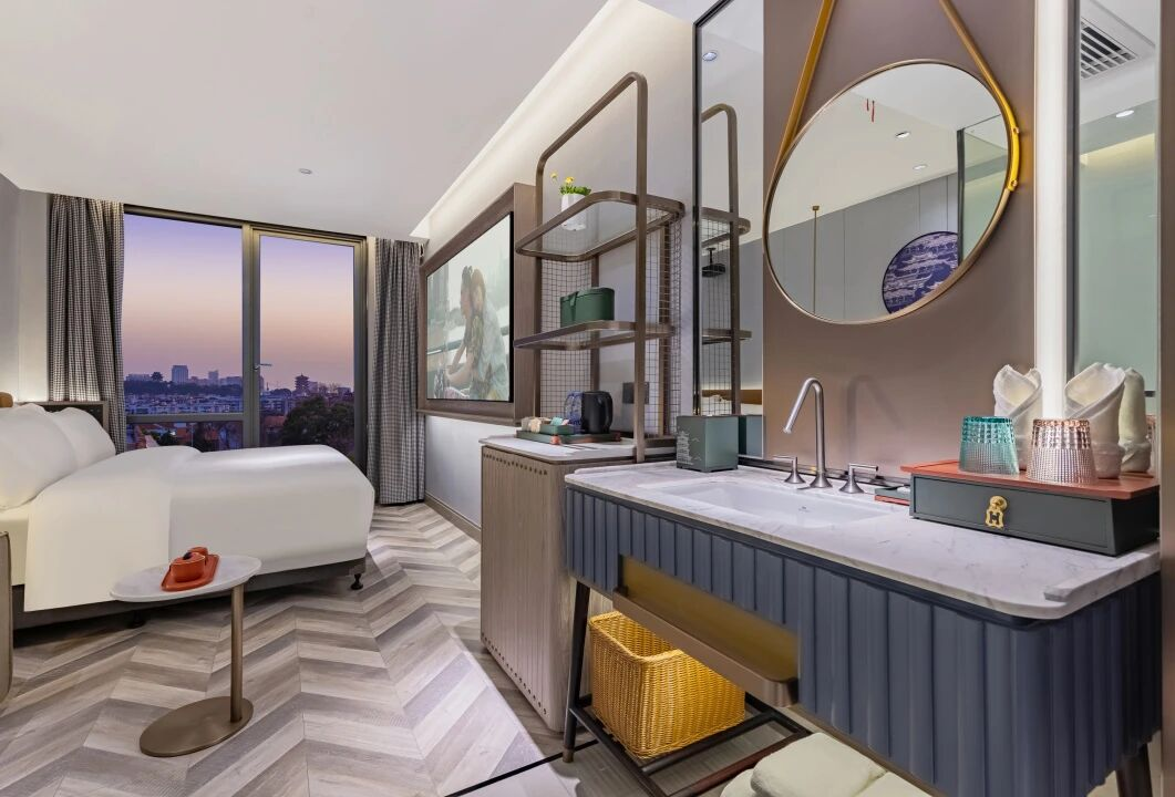 一、“时尚、欢喜、个性、乐活” ,精准捕捉Z世代旅居需求 松石绿与玫瑰金交织的空间里,年轻人分享着手机里的citywalk打卡照,手中的文创冰淇淋将城市地标融化在舌尖——雅阁欢聚酒店不仅是传统的文旅住宿驿站,而是城市文化和社交艺术有机交融的精彩舞台。