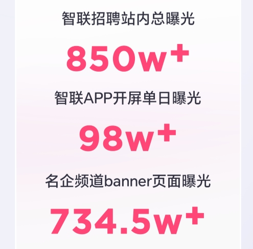 通过这种围绕职场新人的求职需求提供实际帮助与情绪价值的全新玩法,爱玛借助智联招聘丰富的用户资源和广泛的职场影响力,成功激发了广大应届毕业生与职场新人的情感共鸣与参与热情。据统计,该活动的全网总曝光量数据高达1000万以上,智联招聘站内总曝光850万+,爱玛及智联官方社媒矩阵242.7万+,各网络社群总曝光131.5万+,智联APP单日曝光高达98万+,名企频道banner页面曝光734.5万+,以骄人的数据再次证明,想更好地亲近Z时代年轻人,首先要明确这代人最为迫切的实际诉求,并以切实有效的方式帮助他们解决就业等难题。