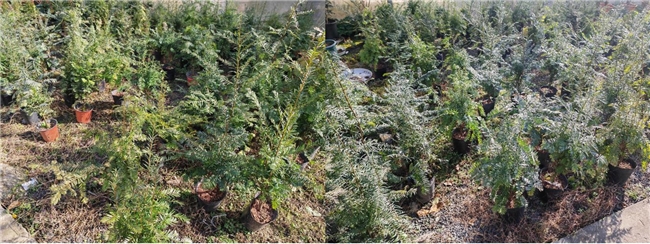 室外小苗施用:针对基地内 120 株红豆杉小苗,筛选出60 株长势稳健的植株进行营养剂喷施,重点喷洒植株新梢与叶片背面,助力其在低温环境下积累养分、增强抗逆性。未喷施的60 株小苗将作为对照组,用于观测营养剂对植株生长的实际影响。