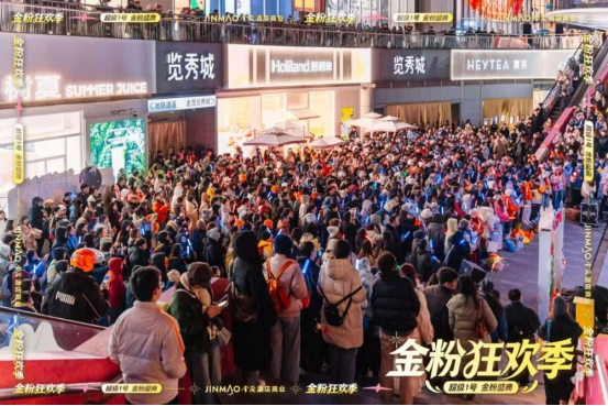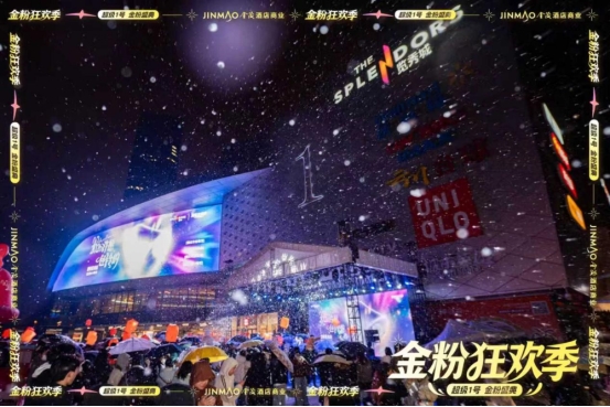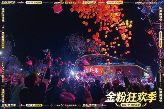 活动期间,金茂酒店商业旗下各项目整体销售表现亮眼: o 总销售额同比提升15%; o 总客流量同比提升24%; o 超50+品牌档期销售额同城同期NO.1; o 超120+品牌档期销售额同比提升超50%; o 长沙金茂览秀城全年销售额再创新高; o 南京金茂览秀城创跨年档客流新高; o 青岛金茂览秀城及张家港金茂览秀城在12月31日单日客流分别突破10万和15万人次,其中张家港项目客流位列当地第一; o 杭州金茂览秀城 | 秦望水街自开业以来保持高品质运营,出租率达99%。 01.情绪共鸣:跨年节点下的深度连接 人们对购物场所的需求已超越单纯的商品购买,转而寻求情感认同与精神共鸣。金茂酒店商业敏锐捕捉到这一变化,选择在具有强烈仪式感的跨年节点,将“金粉盛典”打造为一次集体性的情感释放与会员回馈。这不仅是对消费者“辞旧迎新”情绪需求的主动呼应与承载,更是对消费场景情感价值的主动塑造。