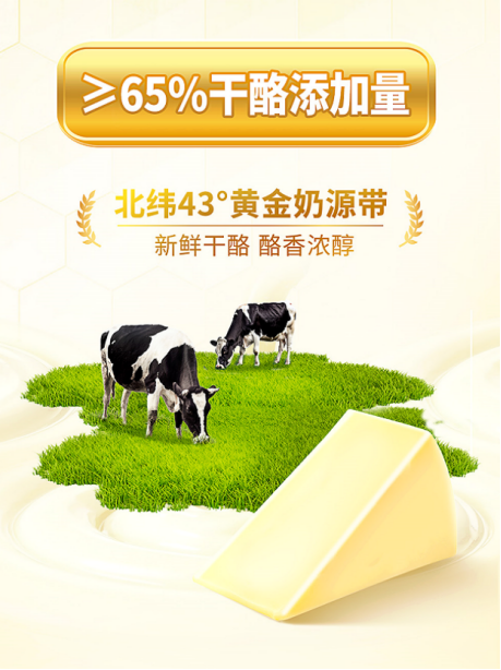 在产品工艺与配方上,妙可蓝多突出了“醇净”概念。新品宣称实现了“四大0添加”,即0添加人工色素、防腐剂、甜味剂及稳定剂。此外,产品标注干酪添加量达65%,且采用新鲜干酪,非水基配方,以提升香浓口感。