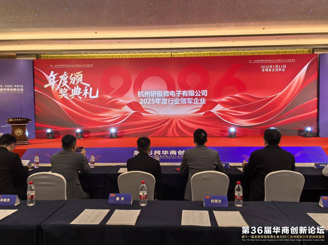 2026年1月11日,备受瞩目的第36届华商创新论坛暨第十一届金鸥奖颁奖典礼在苏州圆满落幕。在这场聚焦企业创新与高质量发展的权威盛会上,杭州研极微电子有限公司凭借其在智能感知领域的全链条创新实力与显著的行业引领作用,成功斩获“2025 年度行业领军企业”大奖,充分彰显了其在行业内的核心竞争力与标杆地位。