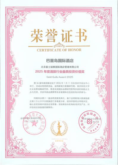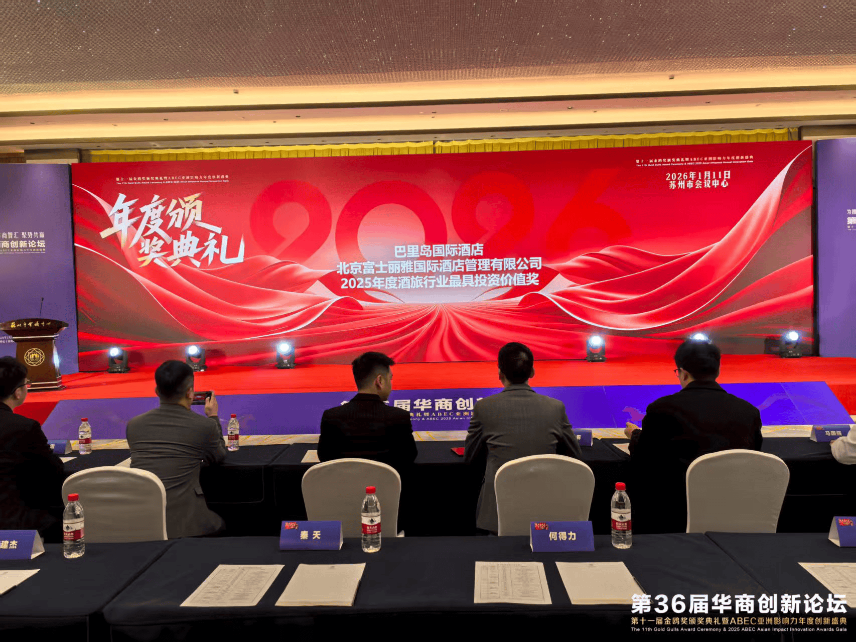 活动上揭晓了"年度金鸥奖"评选结果,其中北京富士丽雅国际酒店管理有限公司 巴里岛国际酒店荣获2025年度酒旅行业最具投资价值奖。
