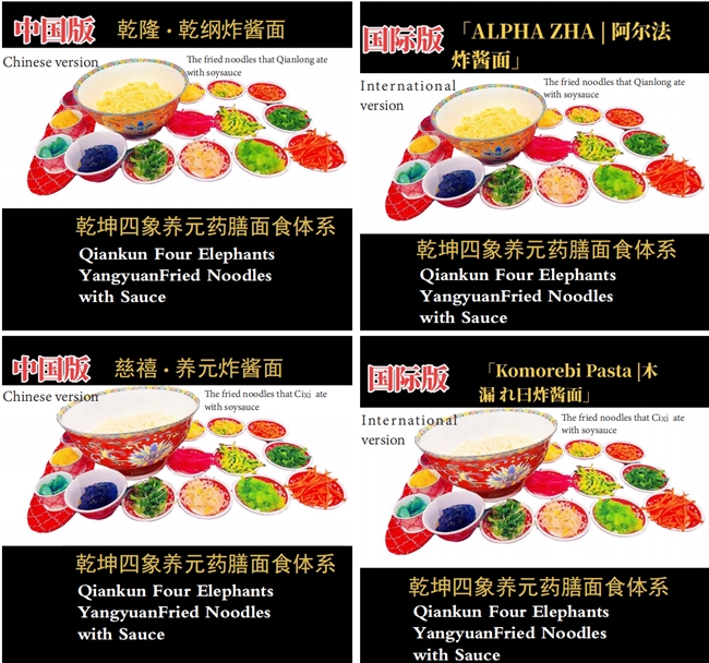 (国宴创始人王圣奎技艺传承工作室授权仪式) 基于这坚实而深邃的四柱体系,《乾坤四象养元炸酱面》的结构被精心编排为一场“味觉与生命的交响”,分为四个层层递进的乐章: 第一乐章·序曲(五行原汤):上面前,一盏以虫草花与五指毛桃共酿的琥珀色清汤静候。其味清甜温润,瞬间唤醒味蕾,安抚脾胃,如同拉开一场盛宴的优雅序幕,为后续的味觉旅程做好身心准备。 第二乐章·视觉(四象阵):青(青龙)、红(朱雀)、白(白虎)、黑(玄武)四色菜码,依循传统四象方位,盛于雅致的器皿之中。这不仅是色彩的视觉艺术,更是一套“可食用的中医脏腑养生图”,分别对应疏肝、养心、润肺、补肾的养生功能。食客的第一次深度参与,便从这充满仪式感的“布阵”开始。 第三乐章·核心(乾坤养元炸酱):秘密,深藏于那一勺油亮醇厚的酱中。在遵循古法炮制的基础上暗藏玄机:肉丁已用九制黄精汁与北黄芪提前煨制入味,吸尽草木菁华;出锅前,宁夏枸杞碎与古法黑芝麻如星点般撒入。入口是熟悉而磅礴的经典酱香,回味则是徐徐升腾、熨帖身心的甘润与暖意,实现了风味冲击与养生效用的无缝交融、浑然一体。 第四乐章·高潮(交融成礼):将酱料倾入面中,与四象菜码一同搅拌。筷起筷落间,食客亲手完成一次“天地交泰,五行相生”的象征性仪式。每一根裹着酱汁、挂着各色菜码的山药手工面送入口中,都是咸香、脆嫩、清甜、醇厚等多重口感与味觉的复合奏鸣,更是四位宗师智慧在舌尖上的最终和解、统一与升华。