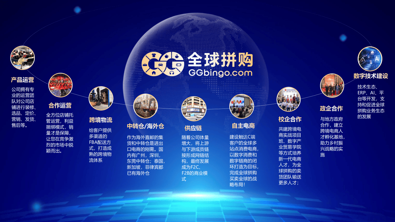 在模式落地过程中,全球拼购以技术与商业模式双轮驱动,实现多维度高效赋能: 在服务端构建一站式跨境电商全托管体系,依托多流量、多店铺、多渠道、多订单的全球联动运作机制,让零基础个体创业者也能轻松入局,共享跨境电商发展红利;在供应链端深度链接中山灯饰、顺德家电等国内优势产业带,凭借自主研发的ERP系统实现店铺运营、采购、物流全链路协同,搭建国内外多仓互联互通网络,与众多供应商建立稳定合作关系,让中国产品销往全球多个国家和地区,为中国品牌出海筑牢产业根基;在人才端与超18所院校共建实战项目班及产业学院,并联合地方政府部门成立人才孵化基地,打通“培养—就业—创业”全通道,为行业输送跨境电商专业人才,助力乡村振兴;在运营端通过一站式服务及1300多人的全球分布式专业团队,成功运营万家跨境店铺,实现规模化、高效化发展。