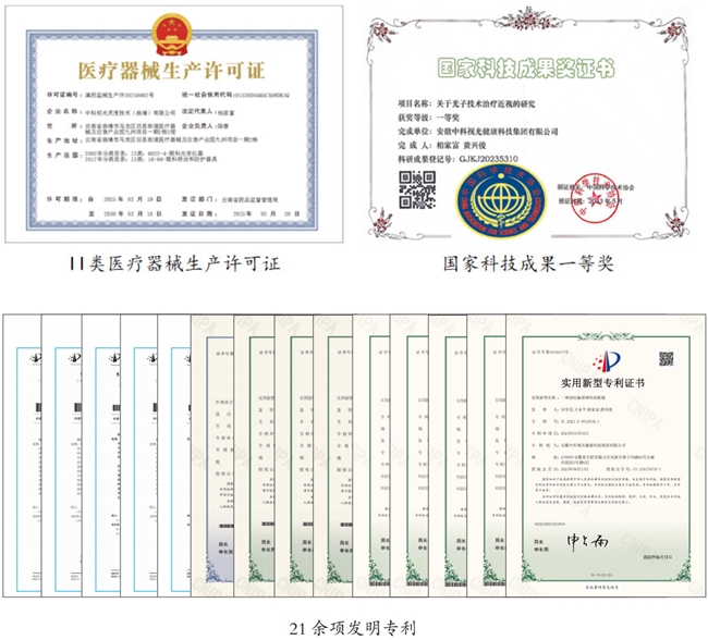 光明未来:构建眼健康守护共同体 品牌的建设不仅在于高层互动,更在于扎根社会的公益行动。2025年6月5日全国爱眼日,“中科视光爱眼公益课堂”走进合肥市青年路小学银杏苑校区,为孩子们带来了一场生动活泼的爱眼护眼科普讲座。他们用专业的知识和互动性强的形式,向孩子们传授“三个一”正确读写姿势、控制电子产品使用时间、保证户外活动等护眼知识,在孩子心中播下了科学护眼的种子。这类公益活动,逐步在社区和学校中构建起品牌的美誉度和信任感。 在柏家富的带领下,中科视光在飞速发展的同时,也取得了累累硕果,2023年“中科灵度”获得了国家知识产权局的商标注册认证。2025年1月,获得II类医疗器械认证;2025年1月,产品成功入选第十七届国家老干部健康联谊会重点推荐项目2025年1月,纳入国家退休老干部集采中心,2025年8月,获得科技型中小企业称号,2025年10月,获得国家级高新技术企业等。