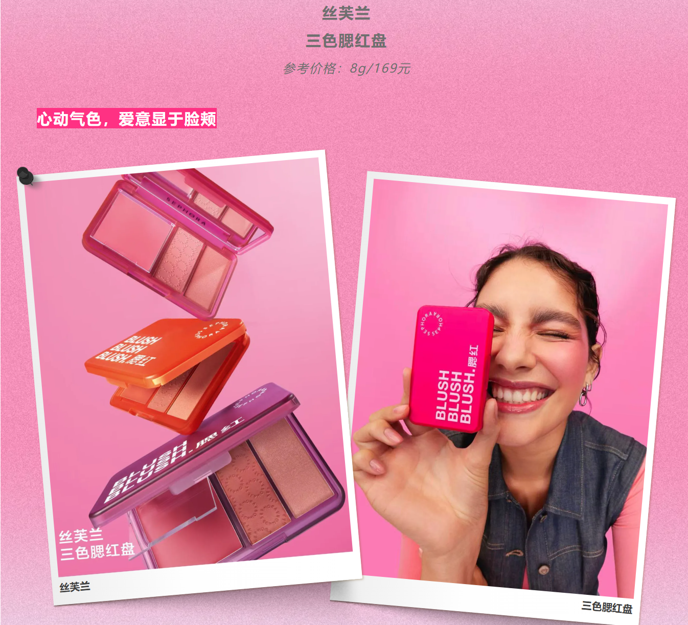 一盘集齐膏状、哑光与珠光三种质地,轻松打造“活人感”妆容:膏状可唇颊两用,哑光打造氛围感,珠光提亮高光。