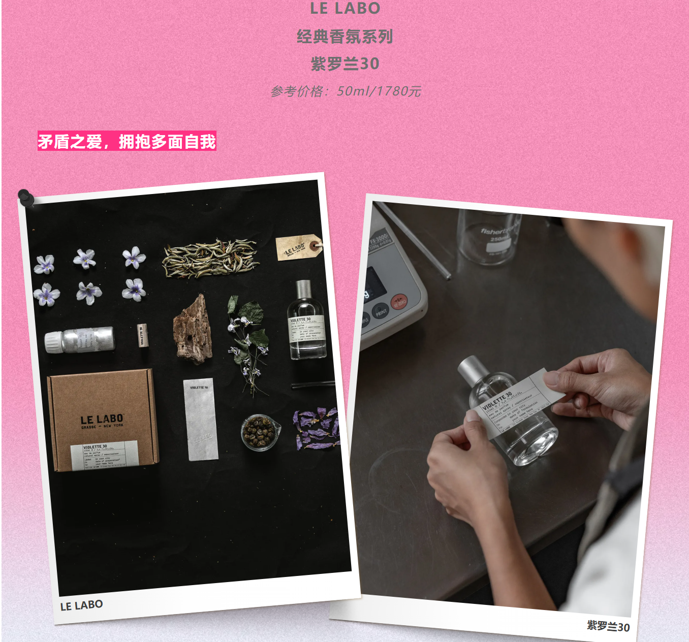 作为LE LABO经典香氛系列新作,它以向暗生长的珍稀白色紫罗兰为核心,糅合白茶、雪松与一丝愈创木的香气,勾勒出层次丰富的青绿花香调。