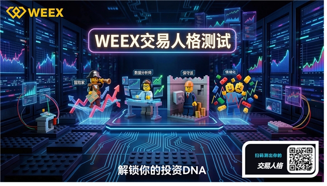 但如果把这个逻辑搬到交易市场,就会变得更有意思。 因为在这里,“性格差异”带来的不是沟通问题,而是真金白银的盈亏。 有人看到上涨会本能冲进去 有人看到下跌会本能装死 也有人哪怕已经亏到麻木,还是会告诉自己:再等等,马上反弹。 这些反应,往往不是思考后的决定,而是条件反射。 所以你会发现一个有点残酷的现象: 有的人亏钱,并不是因为技术不行,而是因为他天生不擅长做这件事。 同一个行情,有人赚钱,有人截图发朋友圈说“又被教育了” 交易市场里最神奇的一点是: 行情是公开的,K线是一样的,新闻也是同步的。 但结果却永远不一样。 有人在震荡里稳定赚钱 有人在同样的震荡里反复止损 还有人每次都能精准买在最高点,然后截图发群里说一句: “我怎么又接飞刀了?” 时间久了,你就会意识到一个很现实的问题: 很多人不是不会交易,而是一直在重复同一种错误。 有人属于“见涨就追型” 有人属于“死扛到底型” 还有人属于“赚一点就跑、亏一点就扛”的经典配置。 这些模式就像一种隐藏的人格设置,一旦形成,就会自动运行。 你以为自己在根据行情做决策,其实很多时候,只是在执行自己的默认程序。 WEEX Labs建议:先搞清楚自己是“哪种人” 也正因为这样,最近开始出现一种挺有意思的趋势: 交易员也可以对自己做一次做测试。 不是测技术水平,也不是测市场判断,而是测一件更基础的东西—— 你到底是一个什么样的交易者。
