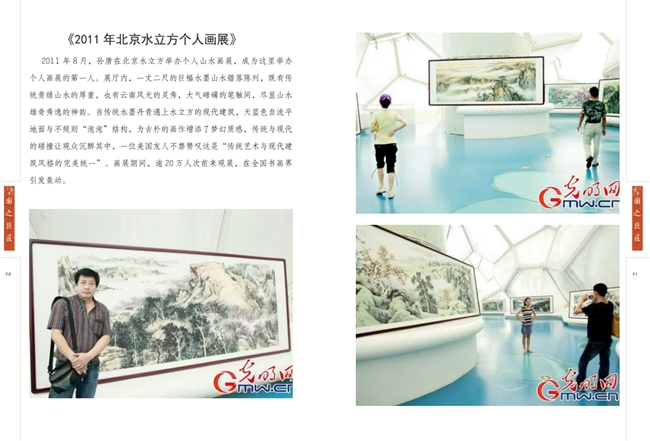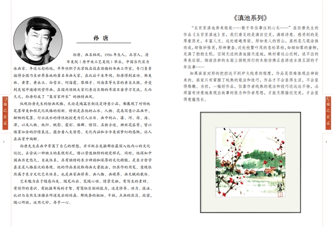孙唐先生在画中寄寓了自己的理想,并不断去发掘那些最深入他内心的文化记忆,去尝试一种独立的表现形式,借以营造独特的视觉样式。同时,他深知中国画历史悠久,自成体系,具有独特的东方神韵和深厚的文化精髓,是东方哲学甚至是人格层次的再现。他的作品虽汲取西画大量技法,但其作的用笔、意境依然属于东方文化艺术体系,也是画家画修养、画人格、画境界、画天赋的载体。 艺术魅力在于随感而发、随笔而出、笔随心动、情景交融,有写生的素材、有创作的意识、有把握布局的才智、有驾驭巨制的能力,这是修养、功力、技法、认识与自然生活撞击所迸发出的结晶。那线条的粗细、干枯,点画的浓淡、疏密,随心所欲,运用之妙,存乎一心。
