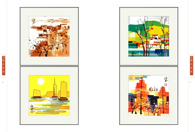 纵观孙唐先生的绘画风格,无论是鸿篇巨制还是诗意小品,都展现了对传统笔墨审美和程式化风格的创新。特别是在他的山水、人物、花鸟写意小品画中,酣畅的笔墨、行云流水的诗性把控更为引人注目。画中的山、瀑、河、荷、海、潭,以及人物、牧归、帆影、霞彩、雁群、情侣、名胜古迹、柳丝花容等,皆以惜墨如金的抒情表达,蕴含着人生哲思、文化内涵和古今美丽梦幻的感慨,让人在品赏中陶醉。