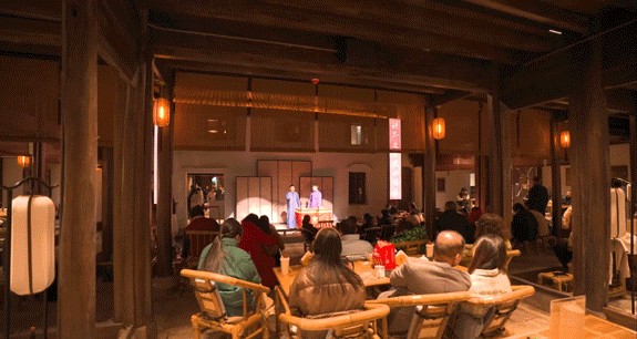 夜幕降临时,游客可以在巾山广场上,观看各种精彩纷呈的演出——由各种历史元素打造的《秘色江南城》实景演出,由历代先贤轮番登场的《青史照古城》大秀演出,无一不令人沉醉其中。