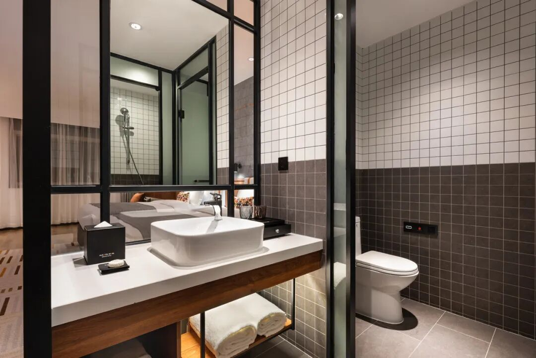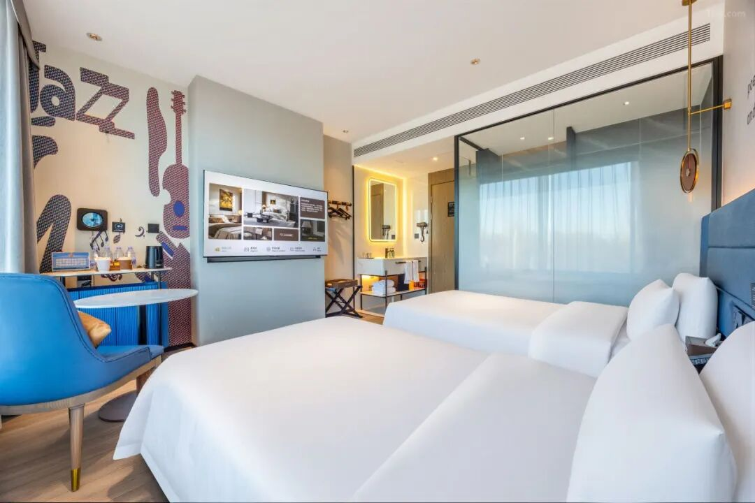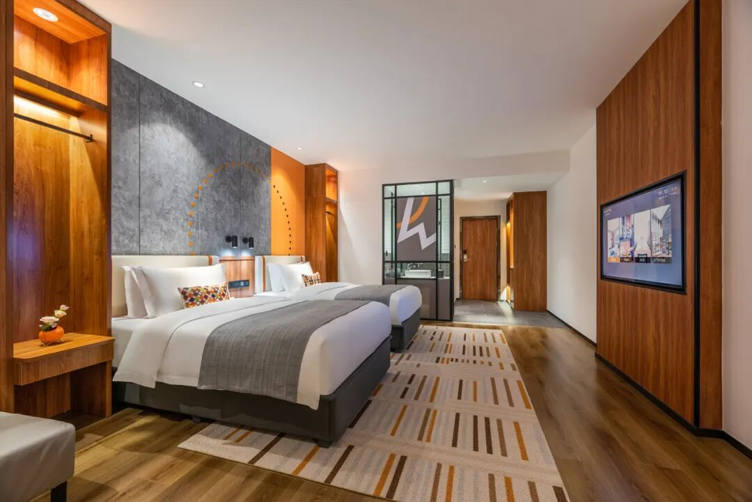 北京西站六里桥澳斯特WOW酒店,则展现了品牌面对成熟商圈存量物业的强大焕新与升级能力。项目位于西站商圈核心,由原有物业焕新升级而来,拥有56间客房。 酒店期待为每一位,即寓意着为宾客带来超越期待的惊喜体验。项目最大优势在于其优秀的交通便利性:步行4分钟可达地铁9号线、10号线换乘枢六里桥站,两站直达北京西站,并可快速换乘网通全城。酒店楼下餐饮丰富,毗邻银座和谐广场、莲花池公园等,集便捷交通、生活配套与休闲绿意于一身,是商旅出行与城市探索的理想起点。
